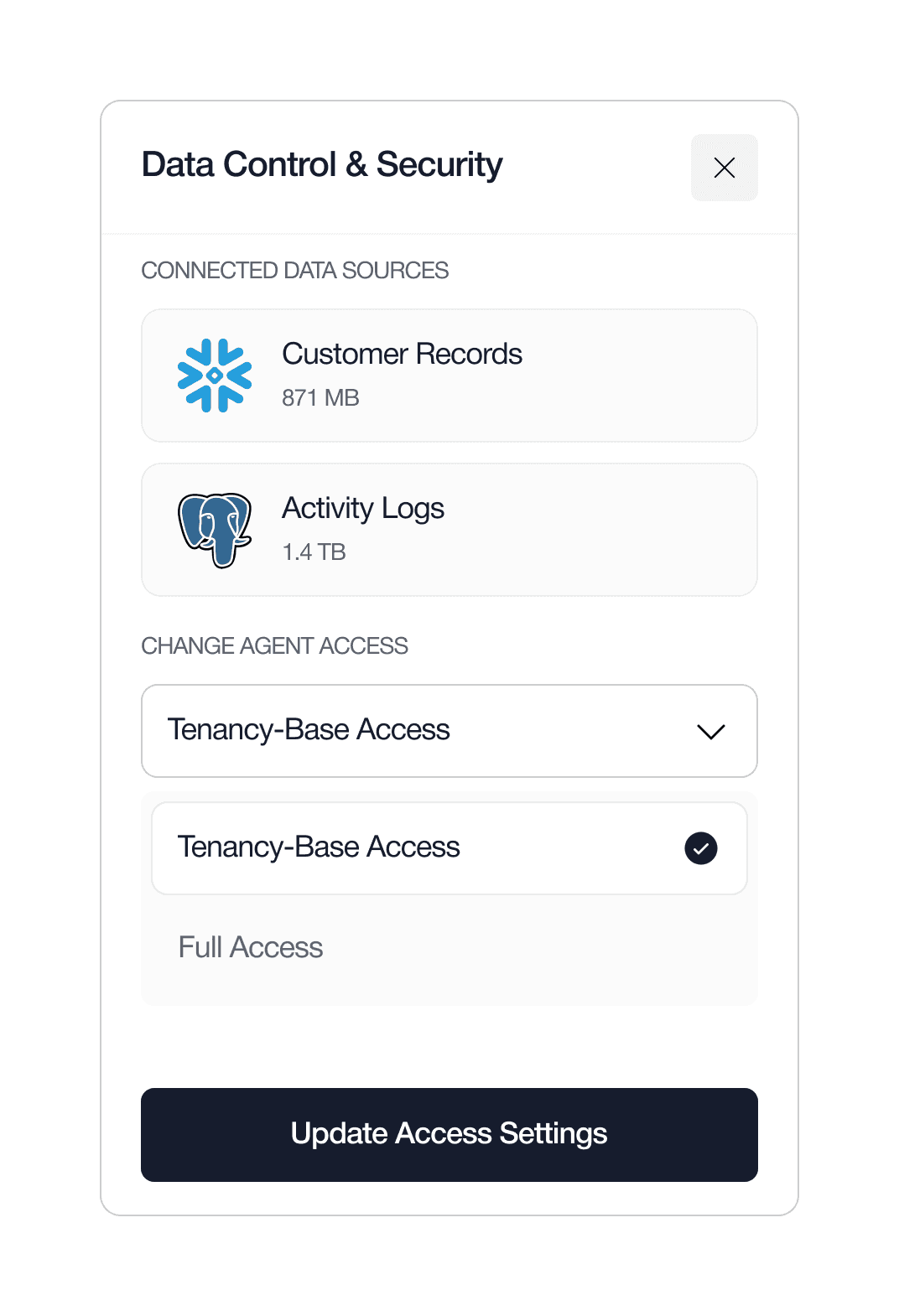 Your customers' data is paramount. Upsolve is built with role-based tenancy from the ground up, ensuring that data is always secure and properly permissioned. You have granular control over what data the agent can access, so you and your customers can have complete peace of mind.