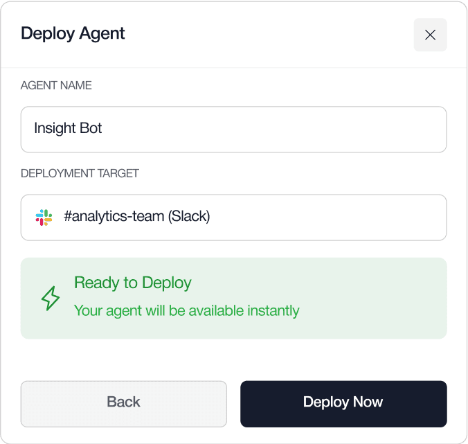You don't need a team of AI experts to get started. Upsolve provides a user-friendly interface that makes it easy to connect your data sources, configure your agent, and deploy it to your users. Our monitoring tools give you clear insights into how your agent is being used and how it's performing.